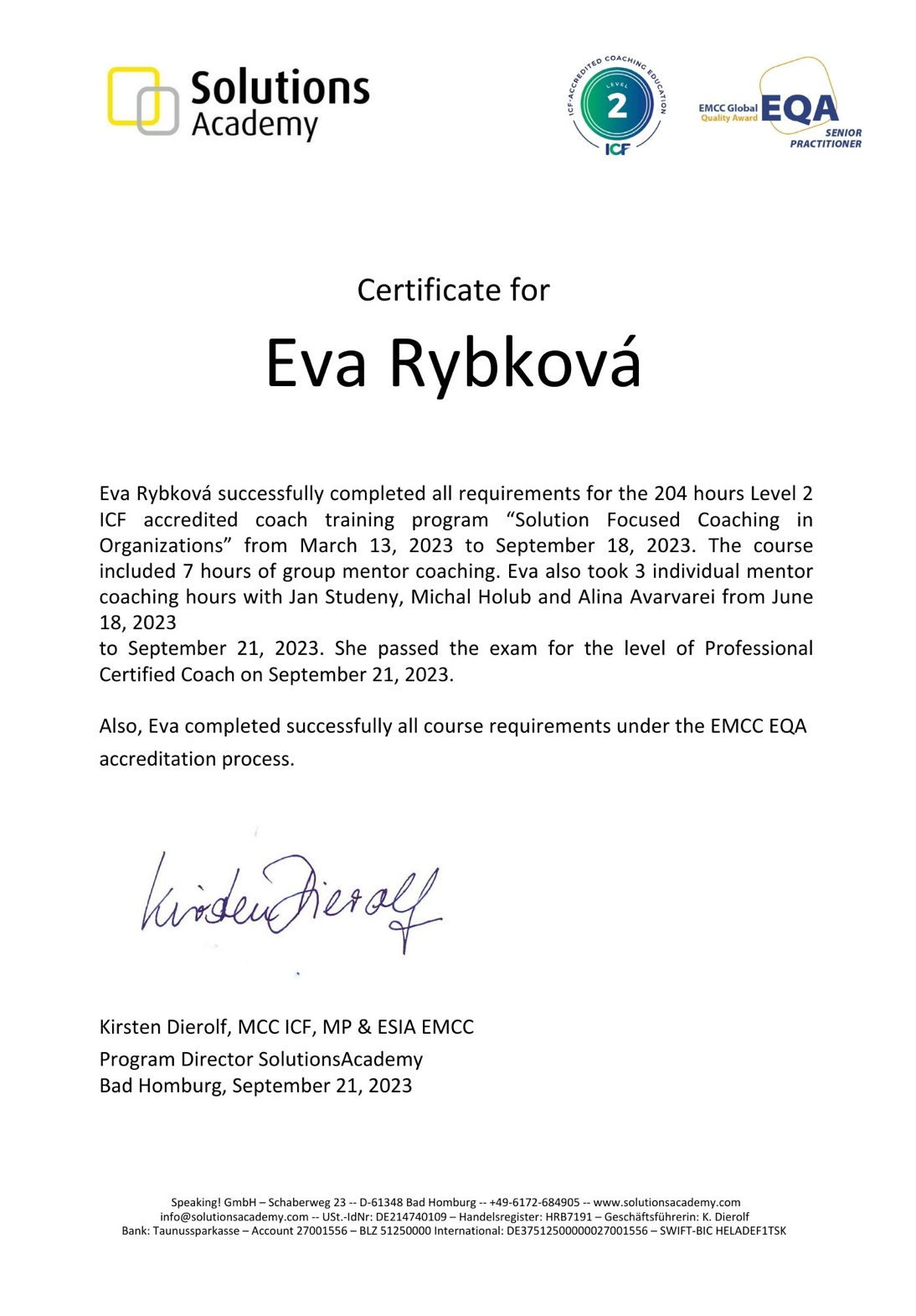 | Coaching in Organisations | Solutions Academy | 204 | ICF | 2023 | Náhled |