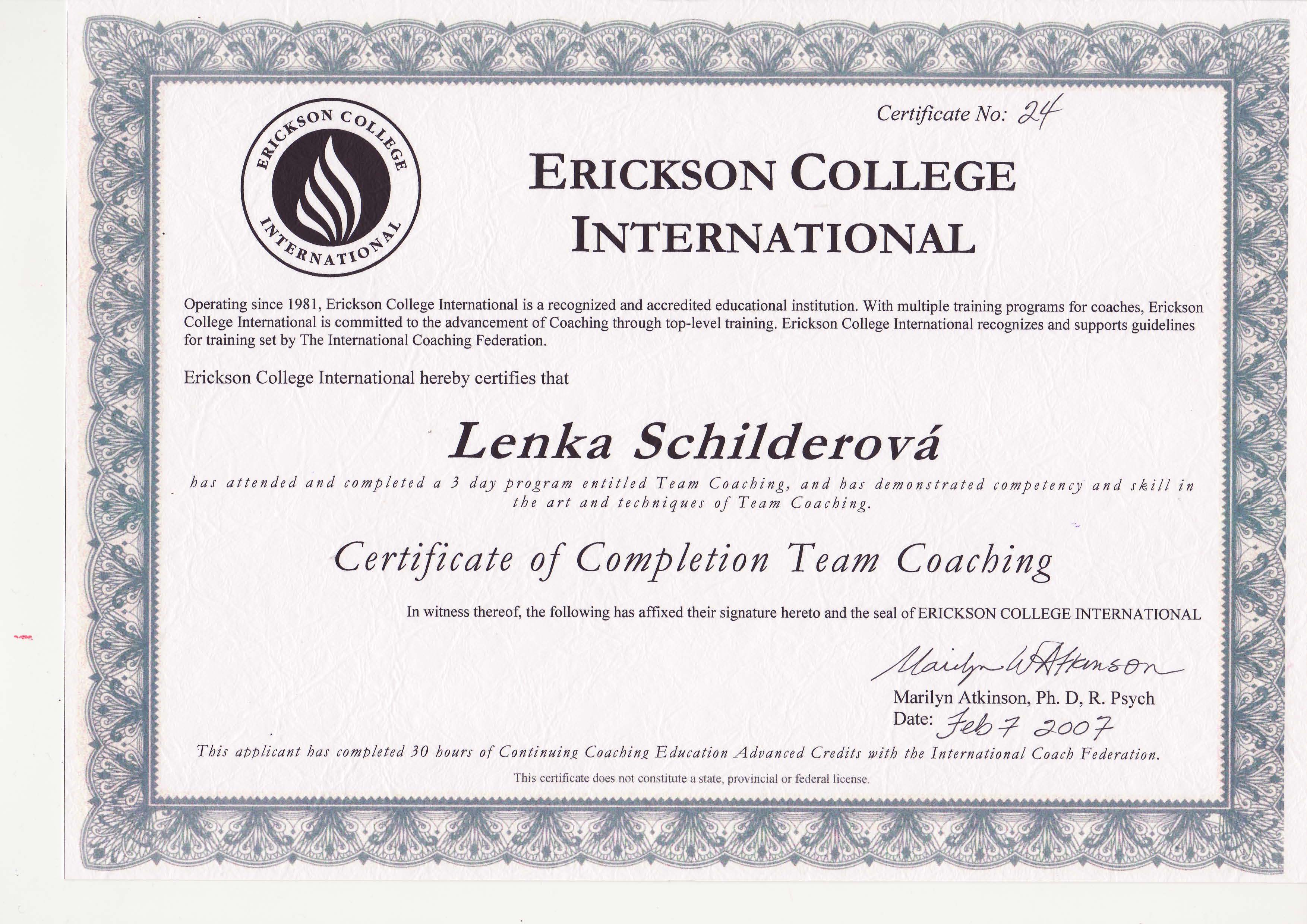 | Team Coaching | Erickson College | 16 | Bez ICF akreditace | 2007 | Náhled |