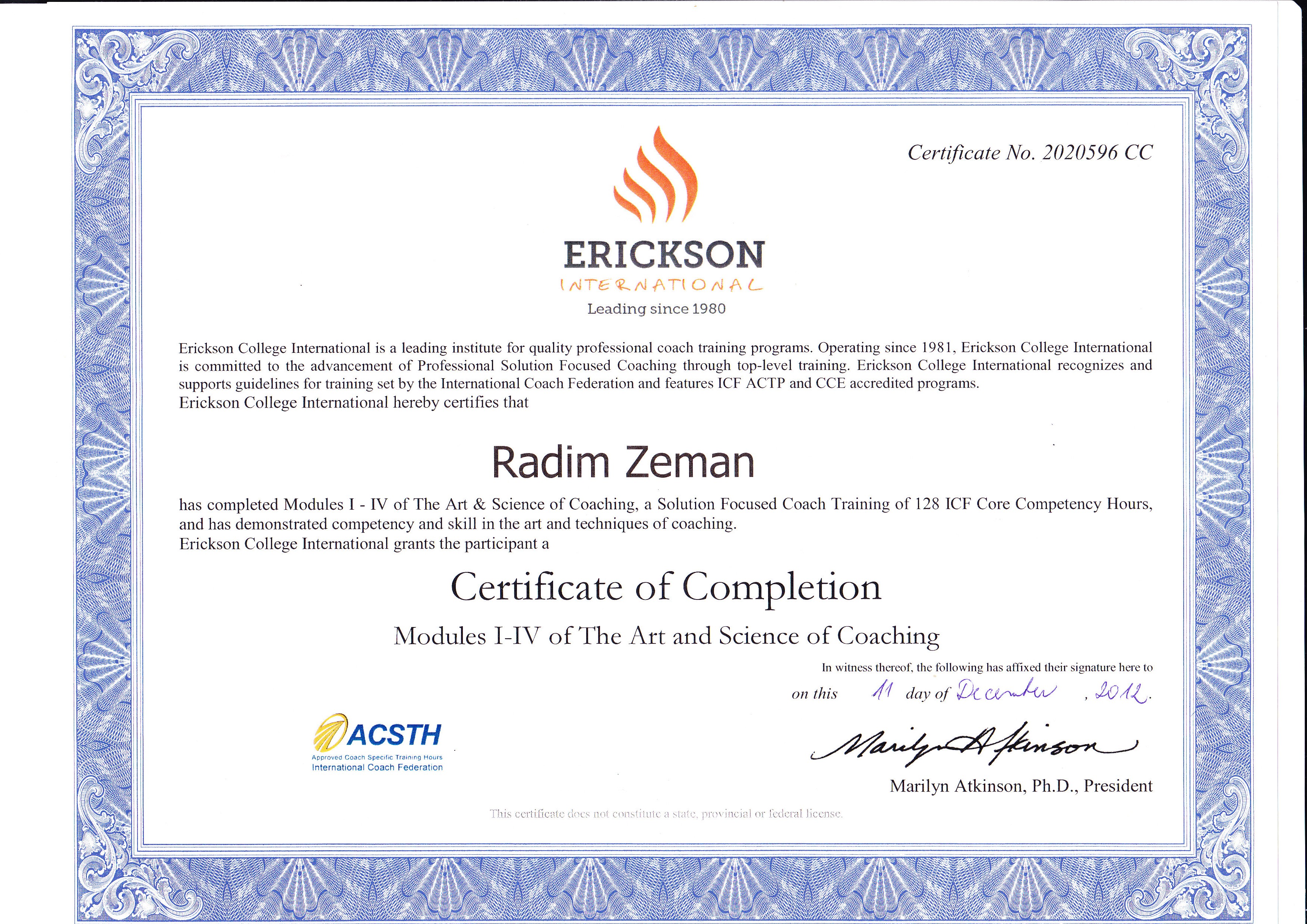 | NLP Practitioner | Erickson Cellege international | 84 | Bez ICF akreditace | 2013 | Náhled |